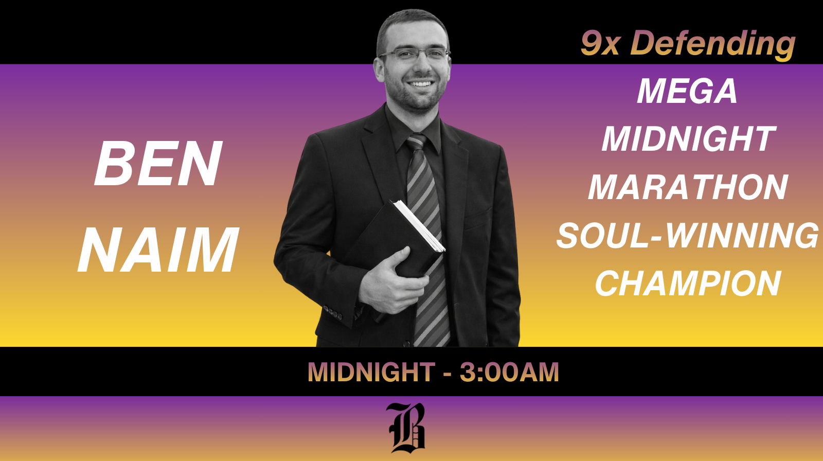 Nothing quite says NIFB island like starting out with a mega midnight soul-winning marathon led by Ben Naim.