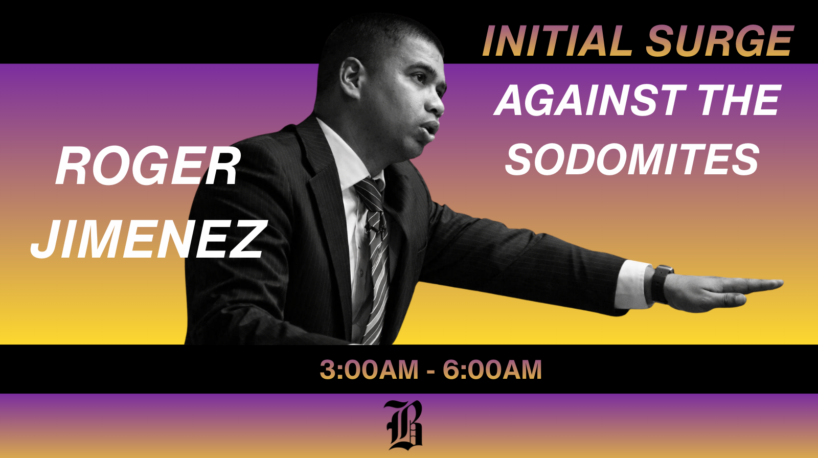 Twelve hours after leading the initial surge against the sodomites, Pastor Roger Jimenez returns to the stage with a message warning of impending doom, death, and potential destruction to the life of the believer if you don’t tithe.