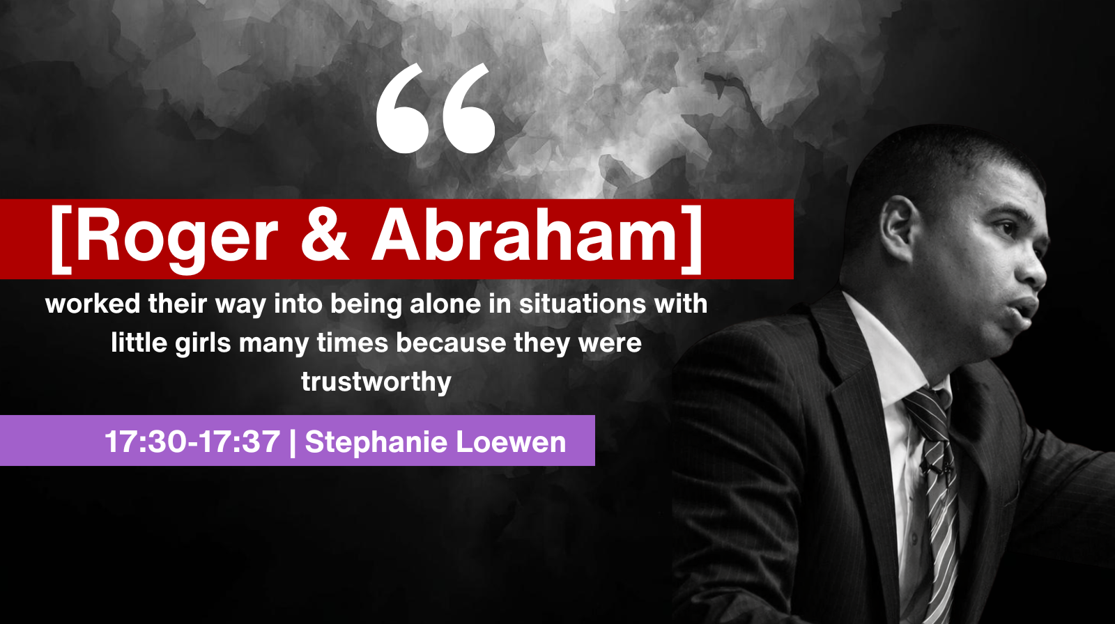 She alleges Roger and Abraham did this repeatedly with other families at Regency Baptist Church and in groups where there were girls available to them by proximity as young as nine years old.